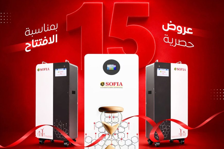 أعلنت شركة صوفيا للطاقة البديلة عن قرب انطلاق افتتاحها الكبير، كاشفةً عن حزمة عروض قوية ومميزة على بطاريات الليثيوم والمنظومات الشمسية، وذلك في 15 يناير 2026.